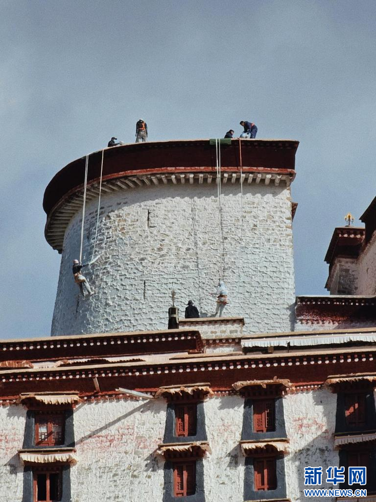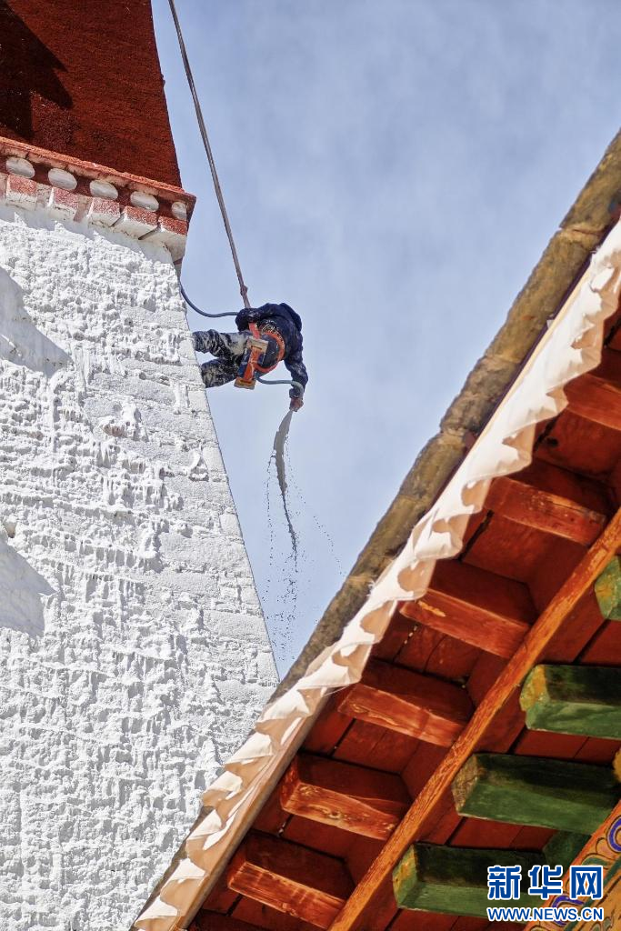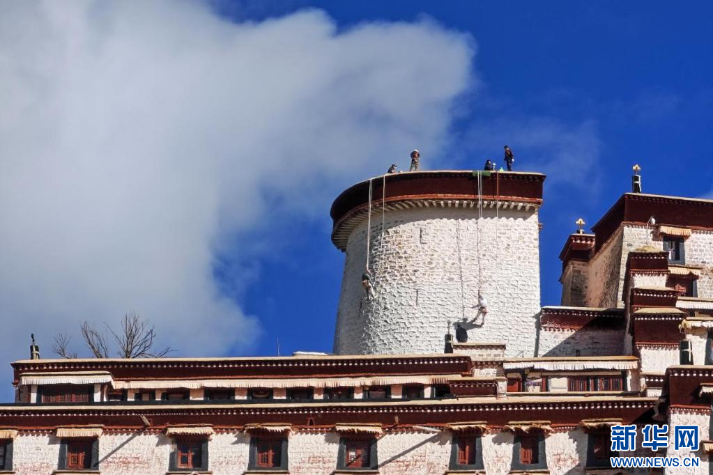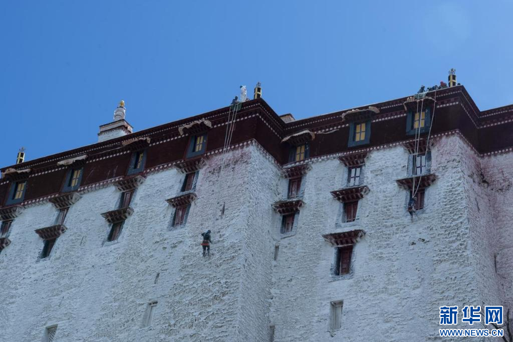 10月18日,布達(dá)拉宮“美容師”們?cè)趪姙⑼鈮?。新華網(wǎng) 旦增努布 攝
