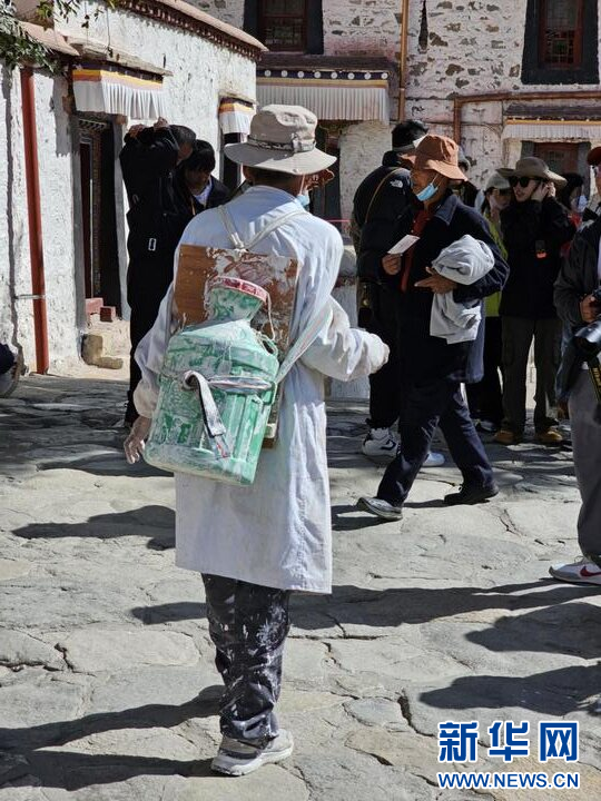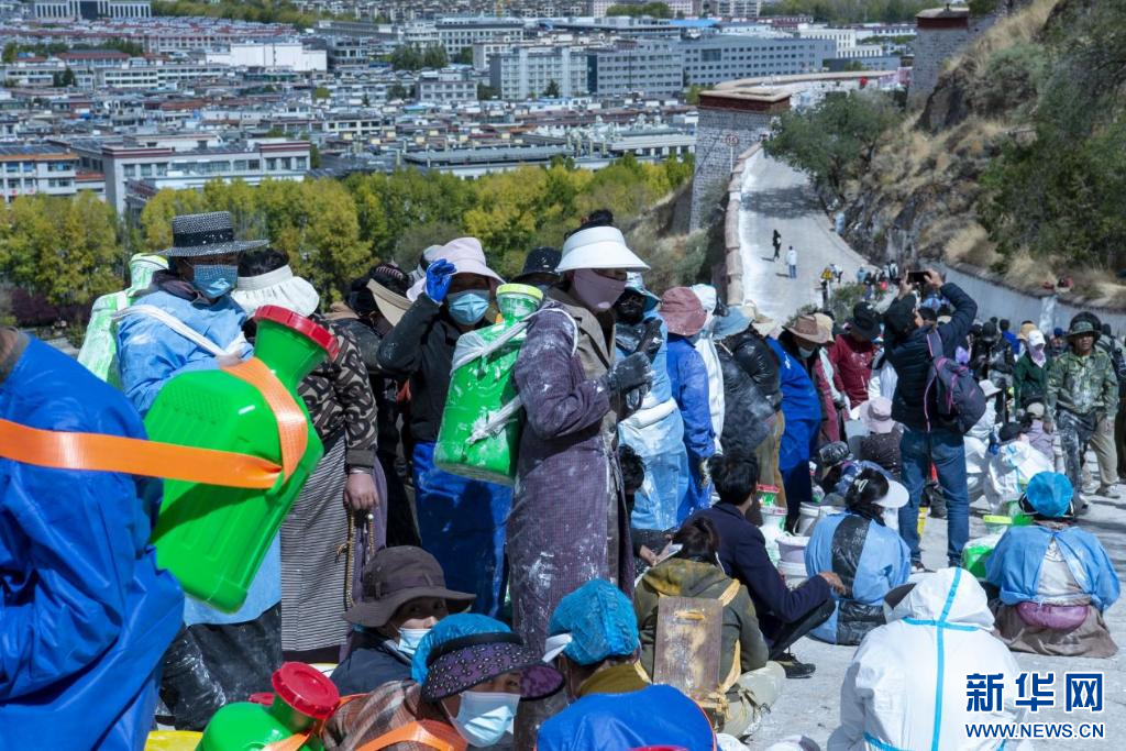 10月18日,布達(dá)拉宮“美容師”們?cè)趪姙⑼鈮?。新華網(wǎng) 柑丹鴦琦 攝