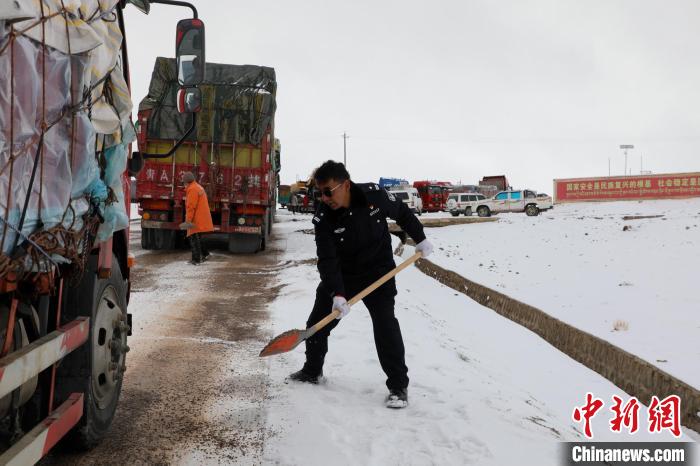 “現(xiàn)在唐古拉山路段處于不間斷堵車狀態(tài),昨天我們這一隊是從下午開始除雪保通,持續(xù)到今天凌晨4點左右才全部疏通。”21日下午,中新網(wǎng)記者連線西藏安多縣公安局交通管理中心秩序中隊隊長達(dá)娃云旦,他介紹,10月17日以來,國道109線唐古拉山段持續(xù)降雪,積雪結(jié)冰,道路通行受阻。安多警方“以雪為令”全力救援被困乘客、車輛,進行除雪保通。