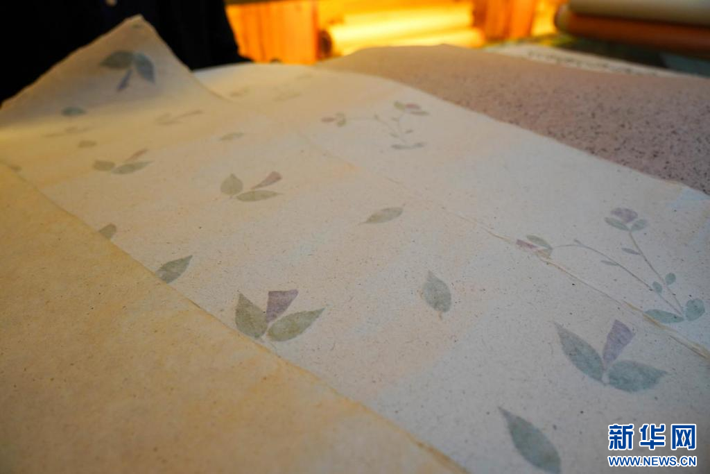 圖為次仁多杰研發(fā)的花瓣夾層藏紙(10月20日攝)。新華網(wǎng)發(fā) 司秦菱 攝