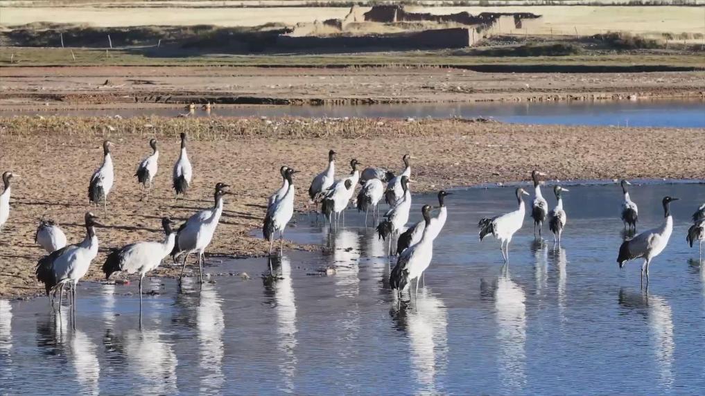 黑頸鶴是國(guó)家一級(jí)保護(hù)動(dòng)物,主要棲息在海拔2500米至5000米的高原、草甸、沼澤地帶。拉薩北部的林周縣平均海拔約4200米,是黑頸鶴的主要越冬地之一。