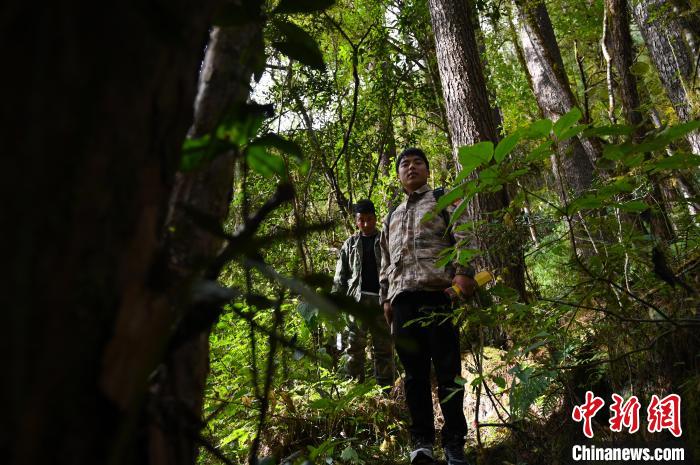 3名管護(hù)員到達(dá)格當(dāng)鄉(xiāng)最深處的一片原始森林。正值深秋,對于管護(hù)員們來說是最好的季節(jié),雨季結(jié)束,蚊蟲也少。他們僅帶了背包和道具,管護(hù)站副站長索朗羅珠說:“今天不用過夜,帶的裝備很簡單?!?/p>
