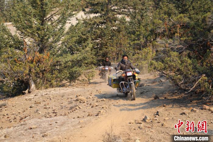 圖為村民騎著摩托車往山上運(yùn)送物資。林芝市森林消防支隊(duì)供圖