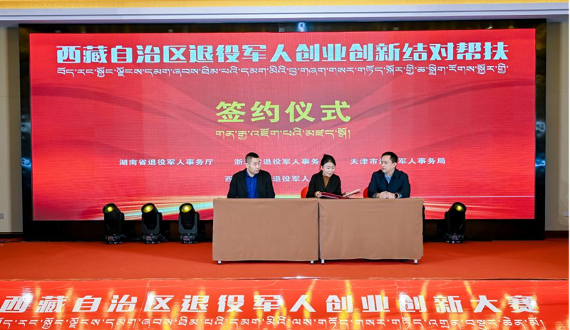 儀式上,西藏自治區(qū)退役軍人事務廳分別與湖南省退役軍人事務廳、浙江省退役軍人事務廳(線上同步簽約)、天津市退役軍人事務局簽署了結對幫扶協(xié)議,為助力西藏退役軍人創(chuàng)業(yè)創(chuàng)新,更好地服務經(jīng)濟社會發(fā)展奠定了基礎。