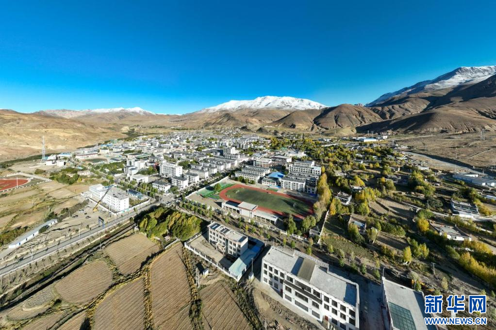 西藏山南市措美縣縣城全景圖(無人機(jī)照片)。新華網(wǎng) 旦增努布 攝