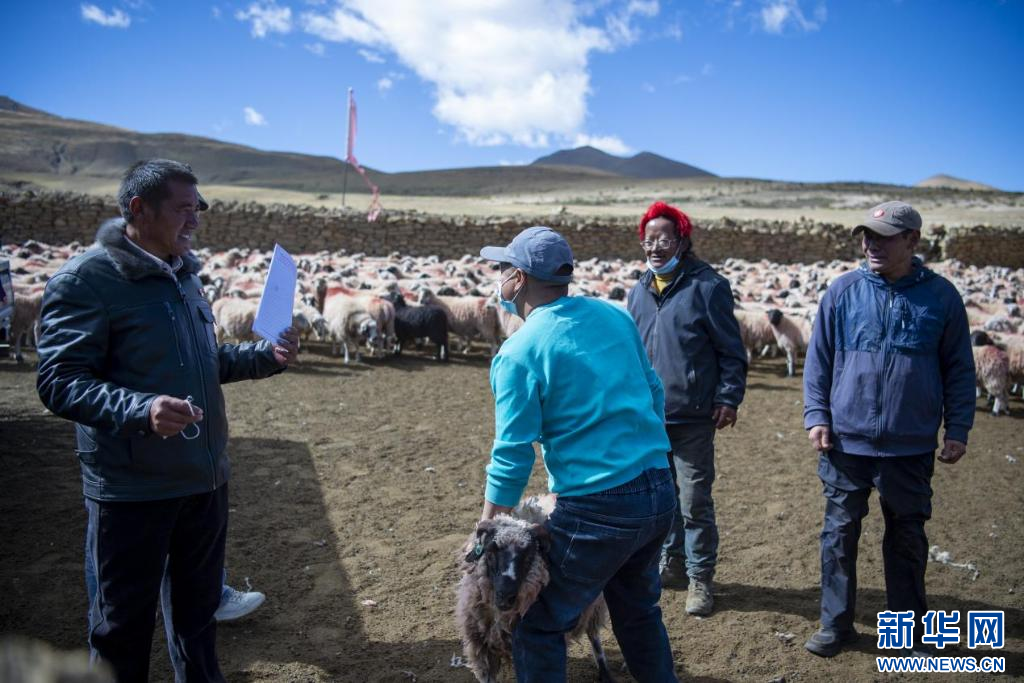 商戶在挑選綿羊。新華網(wǎng) 旦增努布 攝