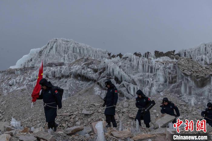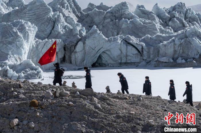 近日,西藏出入境邊防檢查總站普瑪江塘邊境派出所對轄區(qū)海拔5600米的崗布冰川(中不邊境)開展第332次巡邏。