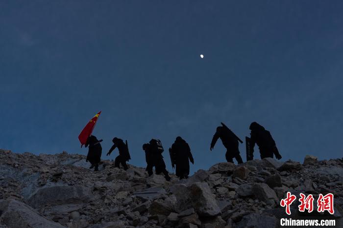 圖為普瑪江塘邊境派出所民警在海拔5600米的崗布冰川噴涂中國。郭遠(yuǎn)敬 攝