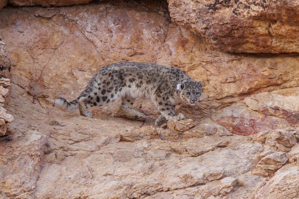 被放歸自然的雪豹。新華網發(fā)(長隆集團供圖)