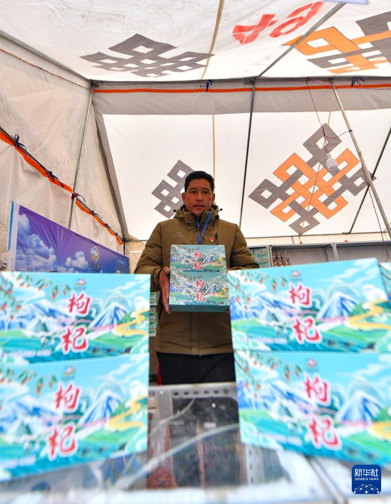 12月13日,在西藏日喀則市康馬縣冬季物資文化交流會上,涅如麥鄉(xiāng)群眾展示自產(chǎn)的枸杞。新華社記者晉美多吉 攝