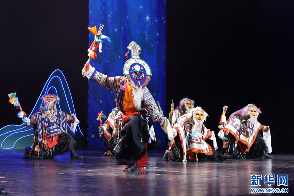 圖為12月21日開幕式晚會開場藏戲《吉祥古韻》演出現(xiàn)場。新華網(wǎng)發(fā) 李騰 攝