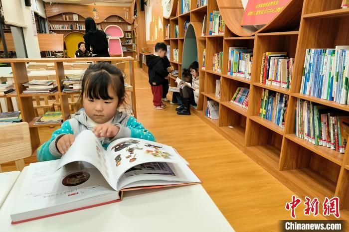 12月22日晚,一位兒童在墨脫縣圖書館內(nèi)翻看書籍。中新社記者 江飛波 攝