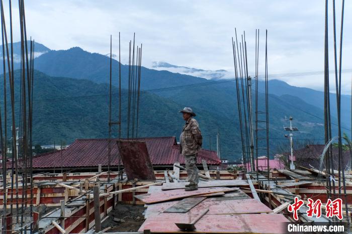 12月18日傍晚,墨脫縣門巴族村民新生在新建房屋地基上查看進(jìn)度。中新社記者 江飛波 攝