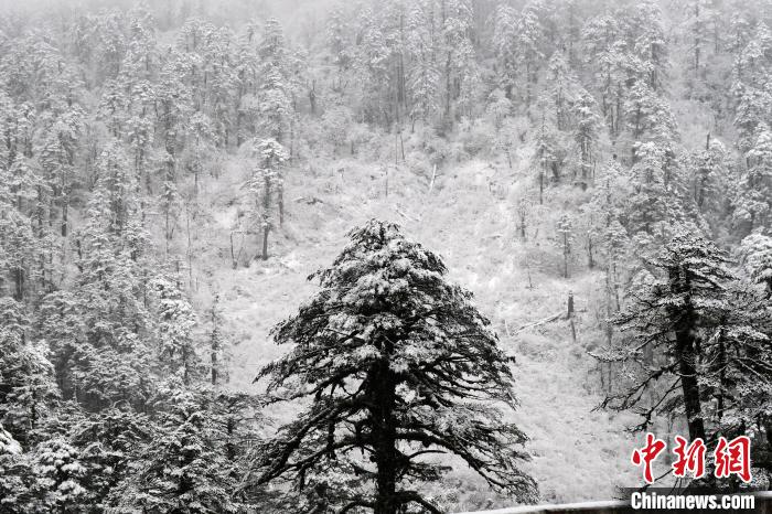 圖為12月18日,西藏墨脫縣一片高山針葉林被積雪覆蓋,枝干上有附生植物。中新社記者 江飛波 攝