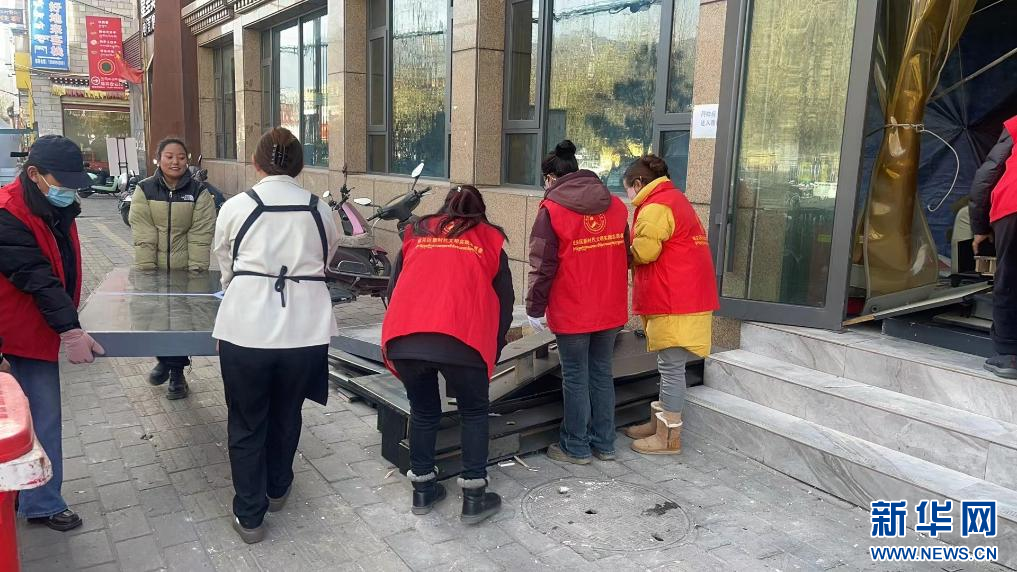 在西藏拉薩市功德林街道幸福社區(qū),志愿者正在協(xié)助商戶處理建筑垃圾(12月3日攝)。新華社發(fā)(娜拉 攝)