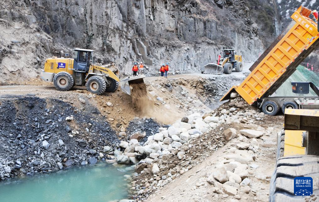 1月3日拍攝的大唐扎拉水電站項(xiàng)目截流施工現(xiàn)場(chǎng)。新華社記者 關(guān)明輝 攝