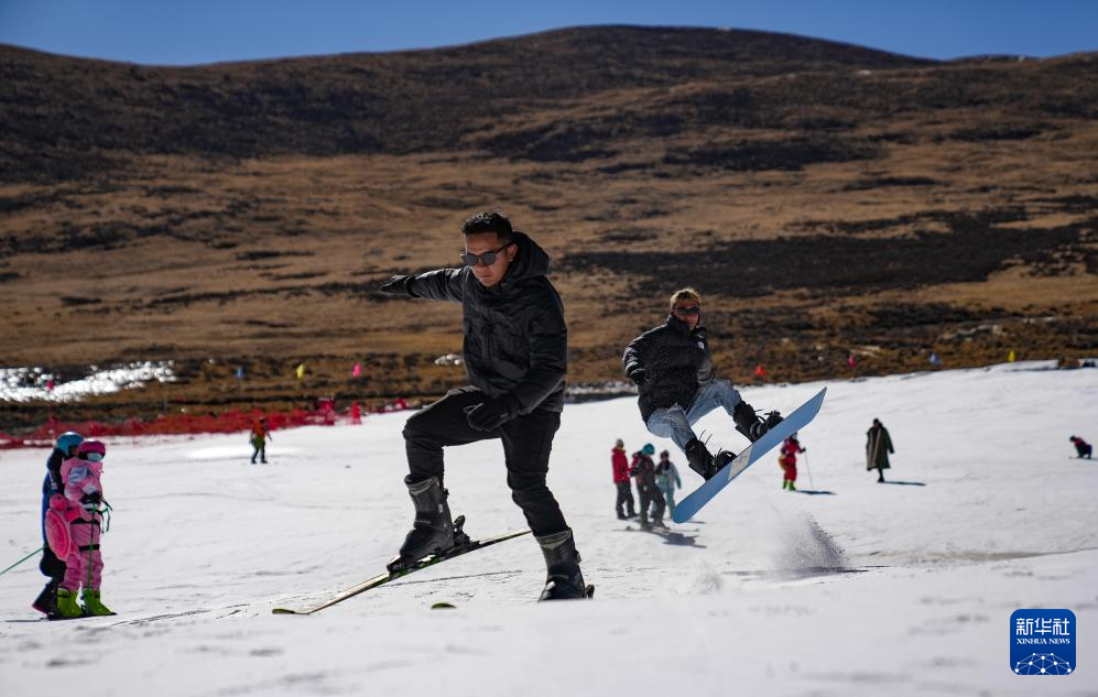 1月13日,滑雪愛(ài)好者在墨多滑雪場(chǎng)滑雪。新華社記者 晉美多吉 攝