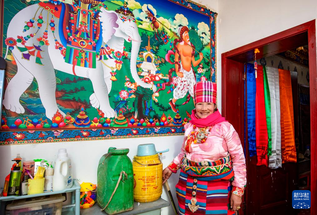 今年51歲的戶主格桑松塔說,以前冬天用水要去幾公里外的湖上鑿冰,后來要去幾百米外的機(jī)電井水房背水,自從2023年11月搬入新居,足不出戶就能用上水。他身旁,連接上水管的洗衣機(jī)正發(fā)出工作的轟隆聲。