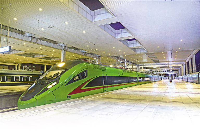 春運首日,“復(fù)興號”緩緩駛出拉薩火車站。記者 丹增群培 攝