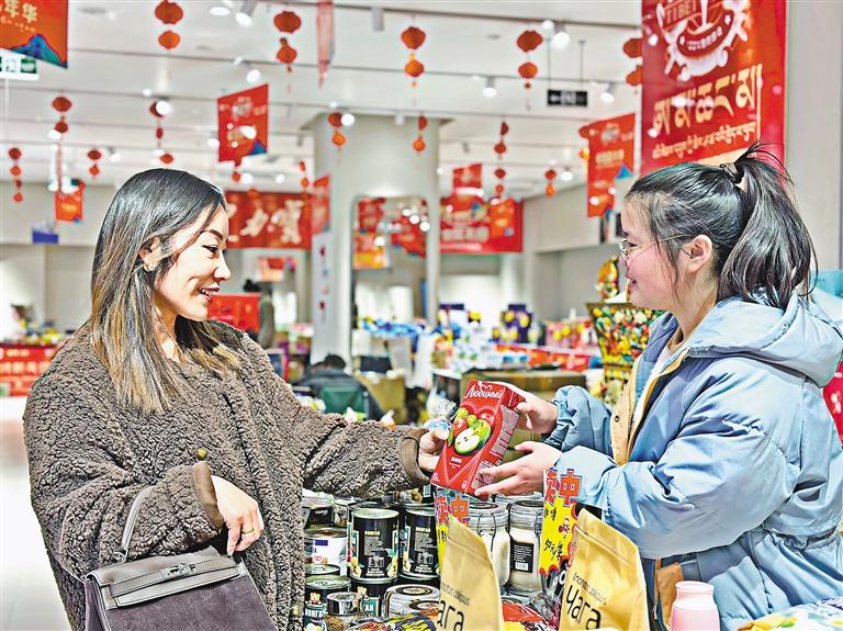 除了傳統(tǒng)年貨市場的八廓商城,拉薩市各大商場、超市也提前備好了年貨。為期9天的“洋”年貨展銷,更是讓共建“一帶一路”倡議呈現(xiàn)在民間交往交流交融中。