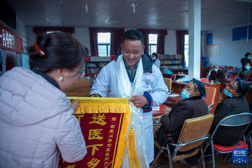義診活動(dòng)即將結(jié)束時(shí),拉布村駐村工作隊(duì)為加央和同事們送來(lái)了錦旗。工作隊(duì)隊(duì)長(zhǎng)邊巴卓瑪講:“義診活動(dòng)很有意義。醫(yī)生們到了村里,能解決農(nóng)牧民看病難的問題,我們真的很感謝他們。”