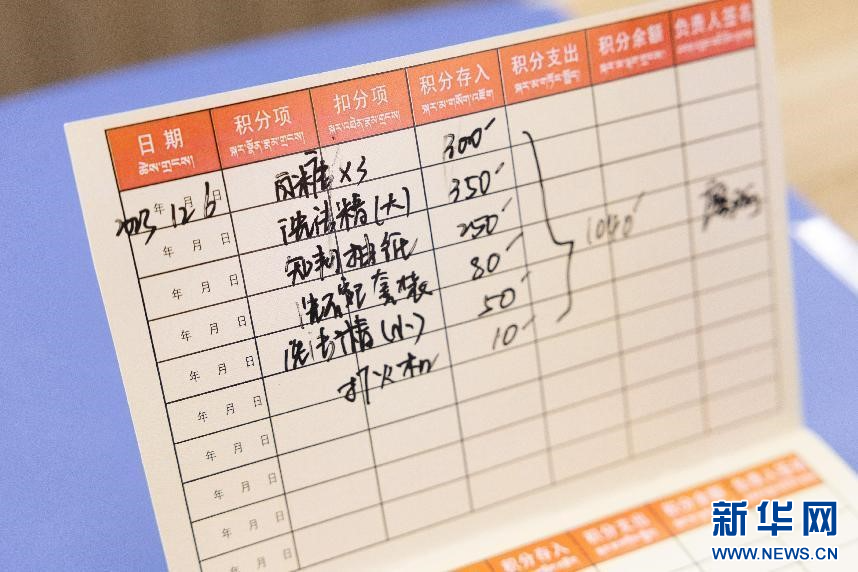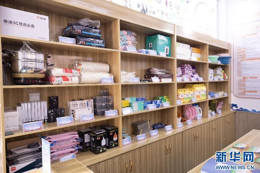 圖為昌嘎村“文化銀行”內(nèi)積分可以?xún)稉Q的商品(2月2日攝)。新華網(wǎng)發(fā) 李騰 攝