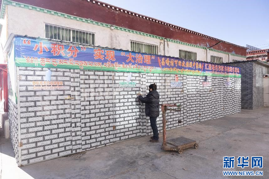 圖為昌嘎村可回收垃圾中轉(zhuǎn)站,每周一群眾對(duì)村內(nèi)垃圾進(jìn)行清理回收之后,統(tǒng)一在此進(jìn)行分類(lèi)稱(chēng)重,最終將積分情況填入農(nóng)戶(hù)的“綠色銀行存折”中(2月2日攝)。新華網(wǎng)發(fā) 李騰 攝