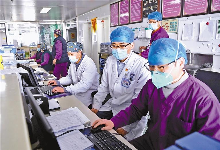 圖為節(jié)日期間,西藏自治區(qū)人民醫(yī)院重癥醫(yī)學(xué)科的醫(yī)生忙碌在救治患者第一線。西藏日?qǐng)?bào)記者 洛桑 攝