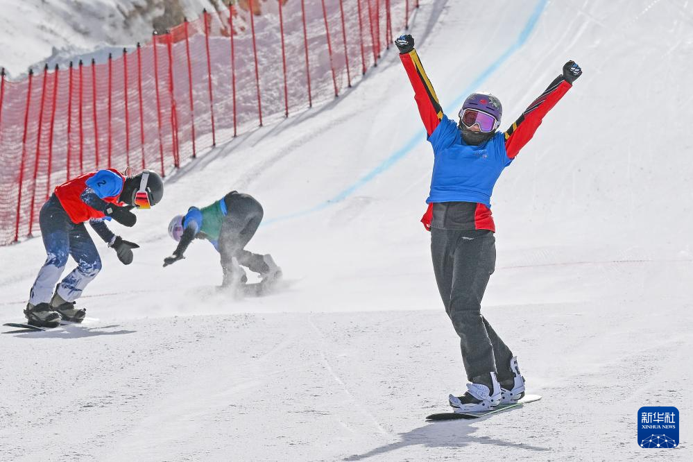 2月19日,在第十四屆全國冬季運(yùn)動(dòng)會(huì)單板滑雪青年組女子障礙追逐比賽中,西藏隊(duì)選手擁青拉姆、湖北隊(duì)選手楊禮妍和遼寧隊(duì)選手馮賀分獲前三名。新華社記者 李志鵬 攝