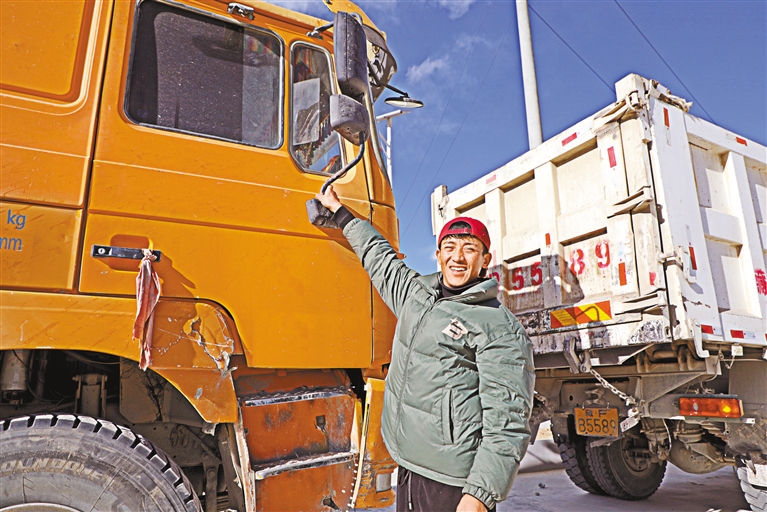 圖為村民格桑平措和他的運(yùn)輸車。記者 洛桑旦增 達(dá)珍 攝