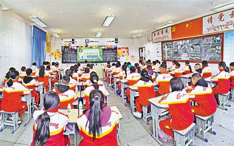 在林芝市第二小學(xué),學(xué)校布置了喜慶的龍年裝飾,教室文化墻裝點一新,老師們分發(fā)起糖果、牛奶。溫暖的“小驚喜”迅速調(diào)動起學(xué)生返校的好心情;波密縣完全小學(xué)利用寒假對所有教室進行了粉刷、維修,對學(xué)生食堂進行了升級改造,干凈、整潔的校園,讓學(xué)生們格外激動……“今天很開心,見到了老師和同學(xué),也見到了更美麗的校園。新的學(xué)期,我要繼續(xù)做好班干部工作,取得更大的進步。”林芝市第二小學(xué)學(xué)生索朗次仁信心滿滿地說。
