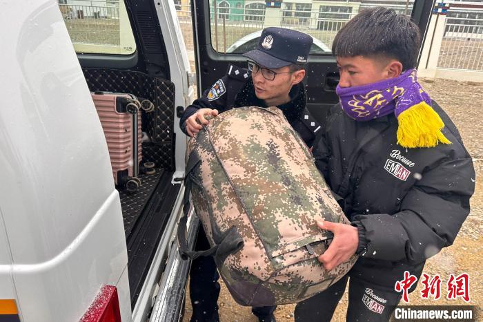 民警幫助學(xué)生搬運(yùn)行李。羅發(fā)燕 攝