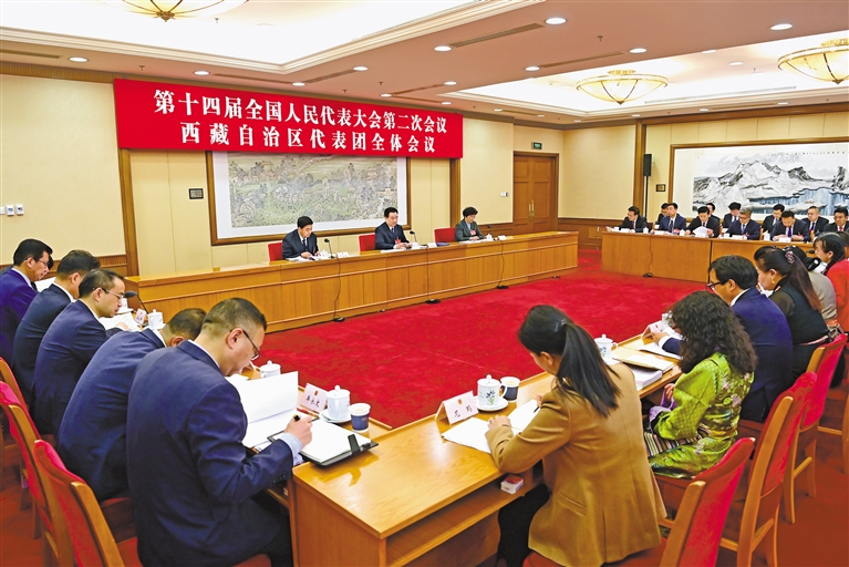 3月7日,西藏代表團(tuán)舉行全體會議,傳達(dá)學(xué)習(xí)習(xí)近平總書記在看望參加全國政協(xié)十四屆二次會議的民革、科技界、環(huán)境資源界委員并參加聯(lián)組會議時的重要講話,審議國務(wù)院組織法修訂草案,繼續(xù)審查計劃報告和草案、預(yù)算報告和草案。
