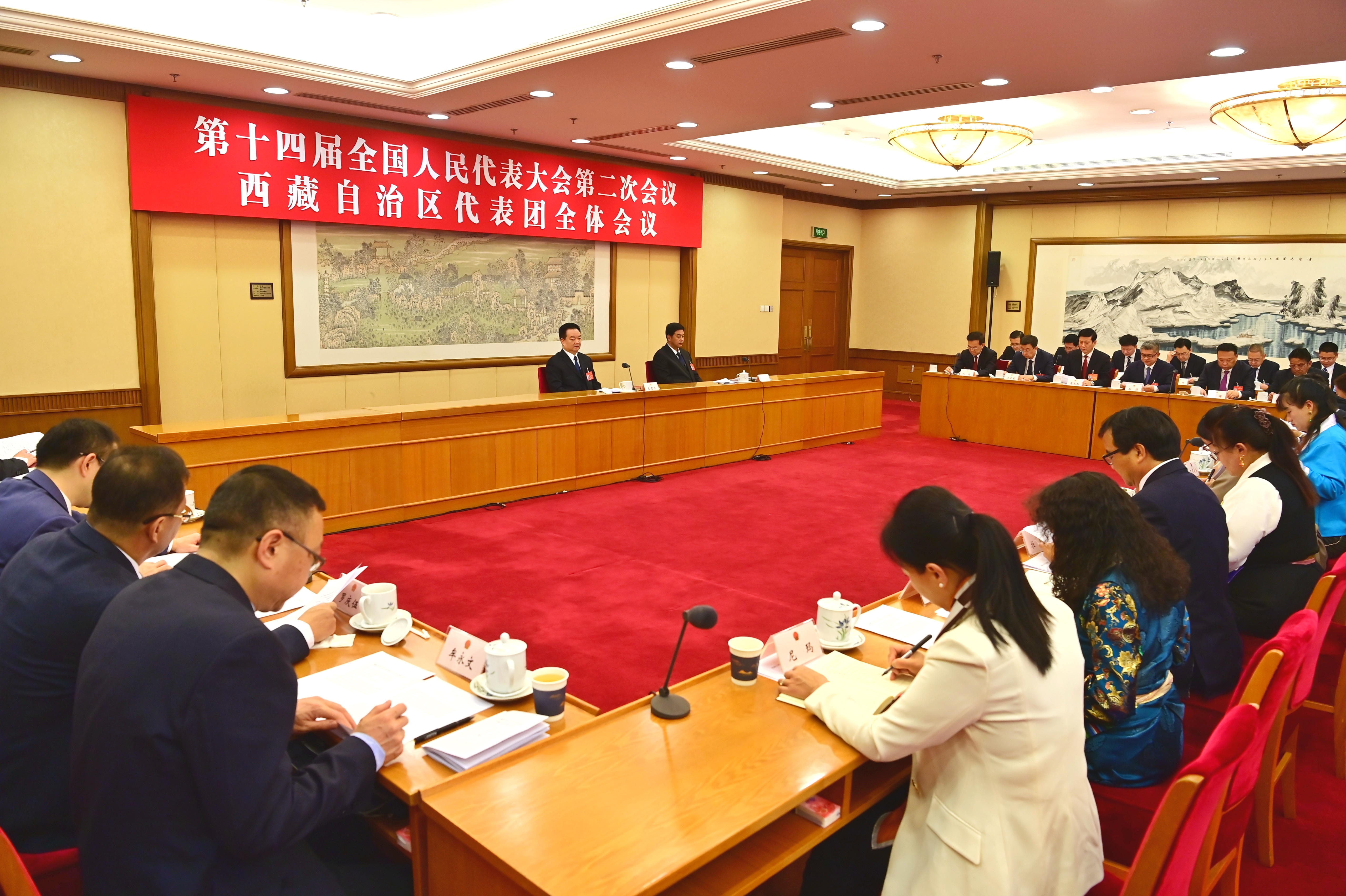西藏代表團團長、自治區(qū)黨委書記王君正,西藏代表團副團長、自治區(qū)主席嚴金海參加。