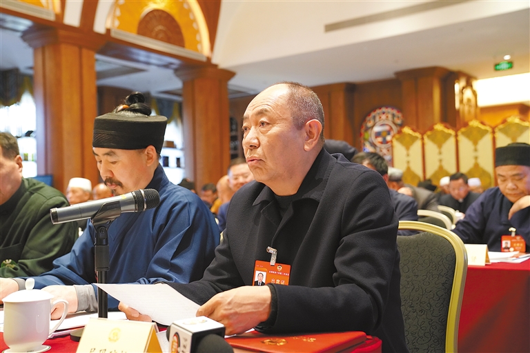 住藏全國(guó)政協(xié)委員尼瑪瓊拉,在宗教界小組討論中踴躍發(fā)言。