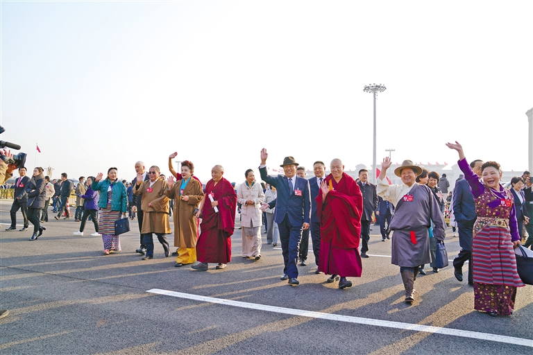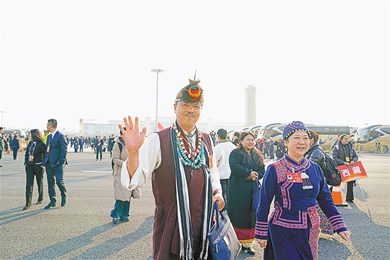 住藏全國(guó)政協(xié)委員一同步入會(huì)場(chǎng)。