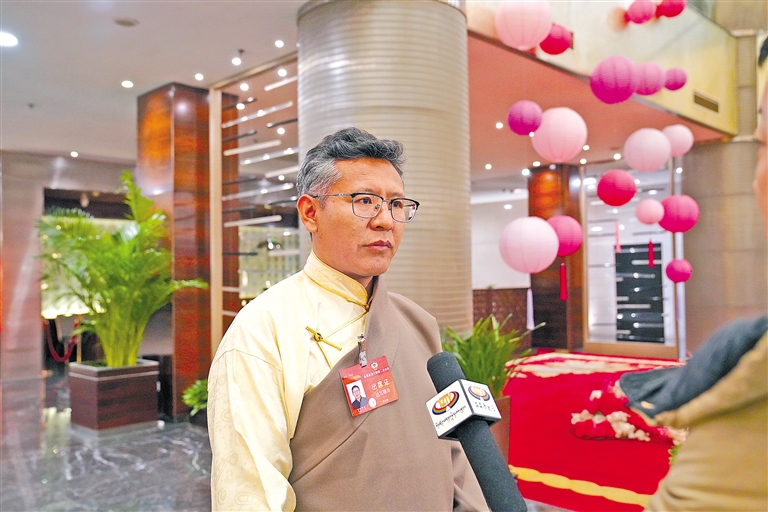 會(huì)議期間,住藏全國(guó)政協(xié)委員達(dá)瓦頓珠在委員駐地接受媒體采訪。