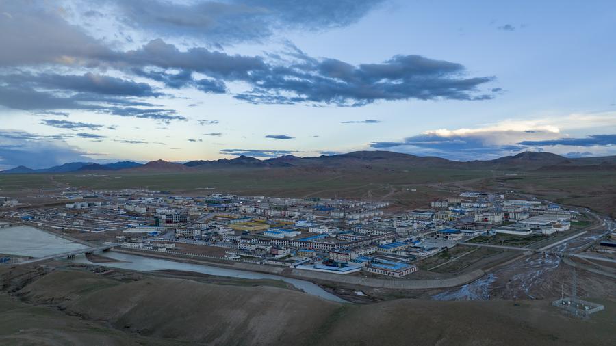 這是尼瑪縣城鳥瞰(2023年8月5日攝,無人機(jī)照片)。新華社發(fā)