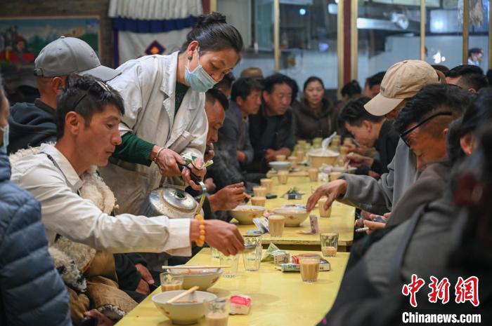 3月14日,西藏拉薩,民眾在大昭寺附近的老牌甜茶館光明港瓊休閑喝茶。中新社記者 貢嘎來松 攝