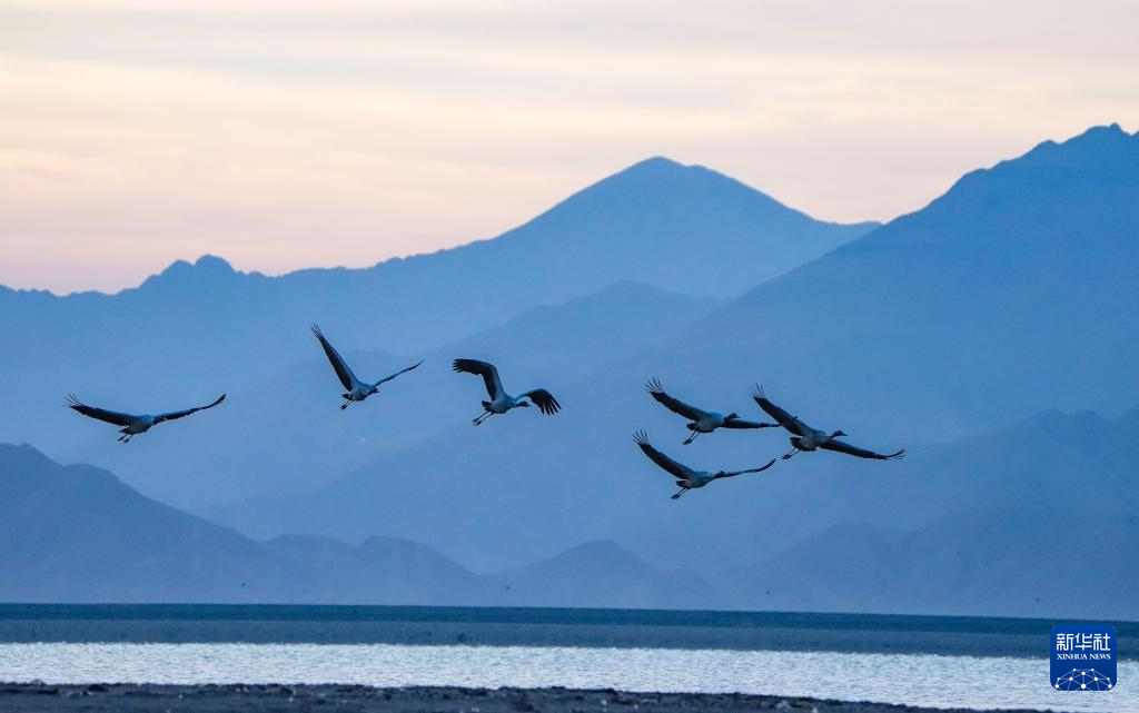 黑頸鶴是國家一級保護(hù)動物,主要棲息在海拔2500米至5000米的高原、草甸、沼澤地帶。每年10月下旬左右,大批黑頸鶴來到西藏林周縣越冬,次年3月底、4月初飛往繁殖地。據(jù)了解,每年來林周縣越冬的黑頸鶴種群數(shù)量,從2005年的1200多只增長到2023年的2500多只。