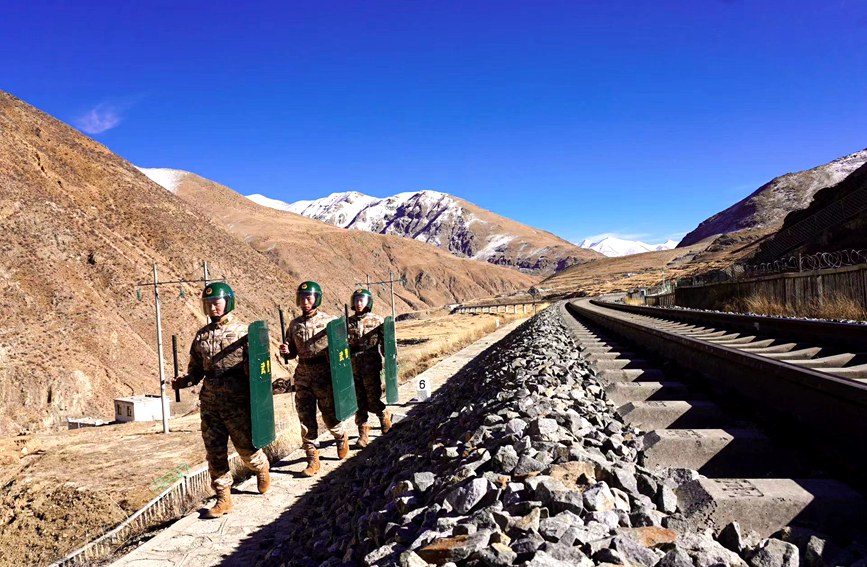 武警戰(zhàn)士在鐵路周邊巡邏。采訪對象提供