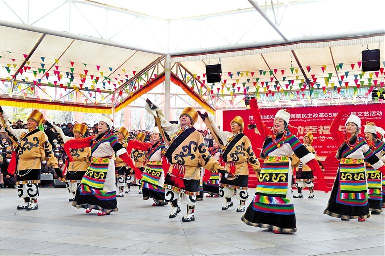 3月25日,由拉薩市城關(guān)區(qū)委、區(qū)政府主辦,城關(guān)區(qū)委宣傳部承辦的“我們的幸福生活”紀(jì)念西藏民主改革65周年文藝活動(dòng),在宗角祿康公園舉行?;顒?dòng)在開場歌舞《美麗的西藏·可愛的家鄉(xiāng)》中拉開序幕,現(xiàn)場觀眾熱情高漲,隨著歌舞旋律的起伏,不時(shí)報(bào)以熱烈的掌聲。此次文藝活動(dòng)充分展現(xiàn)了高原各族兒女對中國共產(chǎn)黨、偉大祖國和新時(shí)代的感恩之情。城關(guān)區(qū)委宣傳部常務(wù)副部長王全勝表示:“通過搭建文藝演出平臺,各族群眾能夠一展才藝、分享幸福生活,讓大家零距離參與文化活動(dòng),既豐富了人民群眾的精神文化生活,又激發(fā)了大家共建幸福新西藏的熱情?!?/p>