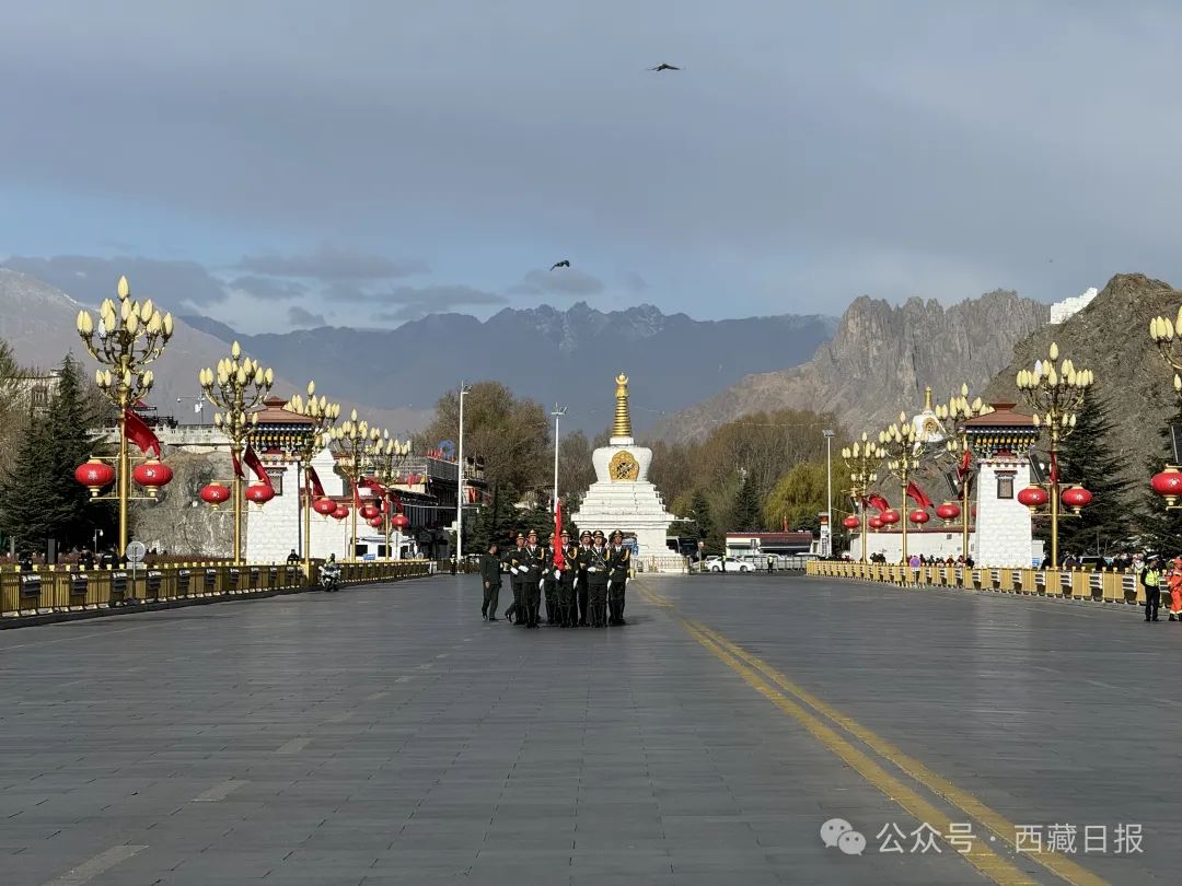 日喀則市南木林縣各族干部群眾1500余人聚集在民族團(tuán)結(jié)廣場舉行紀(jì)念西藏百萬農(nóng)奴解放65周年升國旗唱國歌儀式。