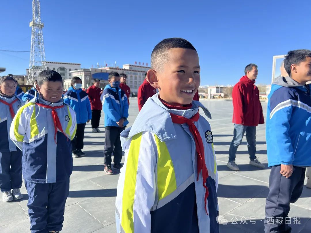 日喀則市薩迦縣麻布加鄉(xiāng)舉行“叫我們怎么不歌唱”紀(jì)念西藏民主改革65周年升國旗唱國歌儀式。