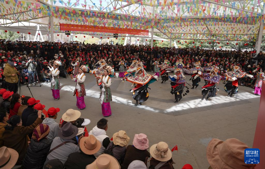 3月28日,群眾在拉薩市宗角祿康公園內(nèi)觀看文藝演出,慶祝西藏百萬農(nóng)奴解放65周年。新華社記者 姜帆 攝