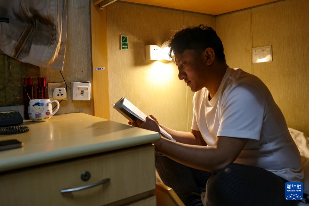 這時的“渤海世紀號”已經(jīng)覆蓋了網(wǎng)絡(luò),強巴可以隨時和家人聯(lián)系,親人們的鼓勵和同事們的關(guān)心給了他堅持下來的力量。工作的第一年,強巴大部分空閑時間都用來學(xué)習(xí),提高專業(yè)技能,趕上同事們的步伐。他也漸漸適應(yīng)了海上的生活,還在船上的健身房鍛煉身體?,F(xiàn)在,他更喜歡閱讀?!拔艺跍蕚渲屑壊僮鞴べY格的考試,空閑的時候在讀藏語版的《哈佛凌晨四點半》,很勵志?!彼f。