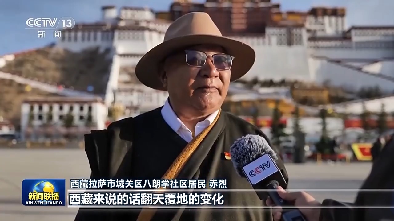西藏拉薩市城關(guān)區(qū)八朗學(xué)社區(qū)居民 赤烈:西藏來說的話翻天覆地的變化,國家有那么好的政策,我們現(xiàn)在群眾都很滿意的。