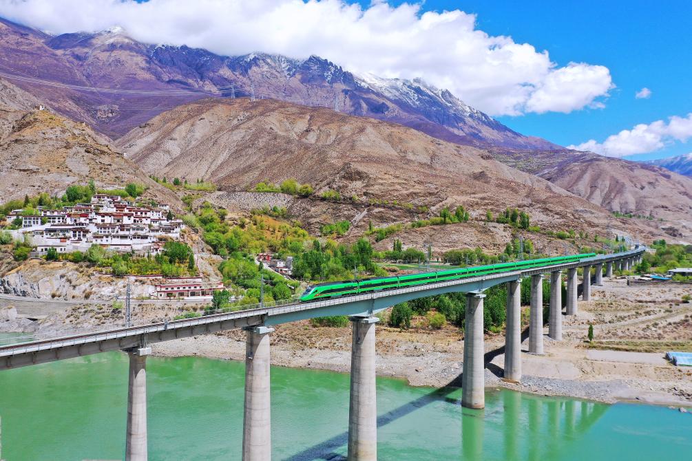 “復(fù)興號(hào)”列車奔馳在雪域高原(2022年4月14日攝)。新華社記者 覺(jué)果 攝