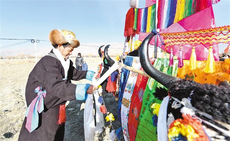 喝完青稞粥,多吉曲珍全家一起出動(dòng)去社區(qū)高標(biāo)準(zhǔn)農(nóng)田參加春耕儀式。