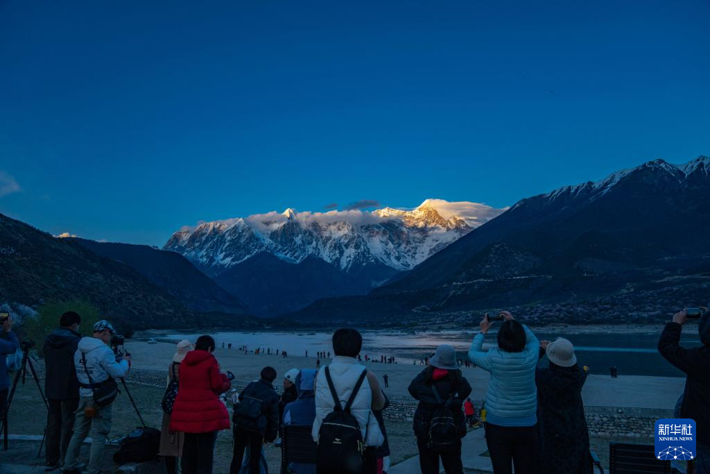 西藏林芝市米林市索松村是欣賞南迦巴瓦峰景觀的最佳位置之一。這里面向南迦巴瓦峰,腳下是蜿蜒的雅魯藏布江。林芝市第二十一屆桃花旅游文化節(jié)期間,雅魯藏布江邊的桃花次第盛開(kāi),與雪山、大江相襯,獨(dú)特的景色吸引著各地游客慕名而來(lái),共赴一場(chǎng)“桃花之約”。